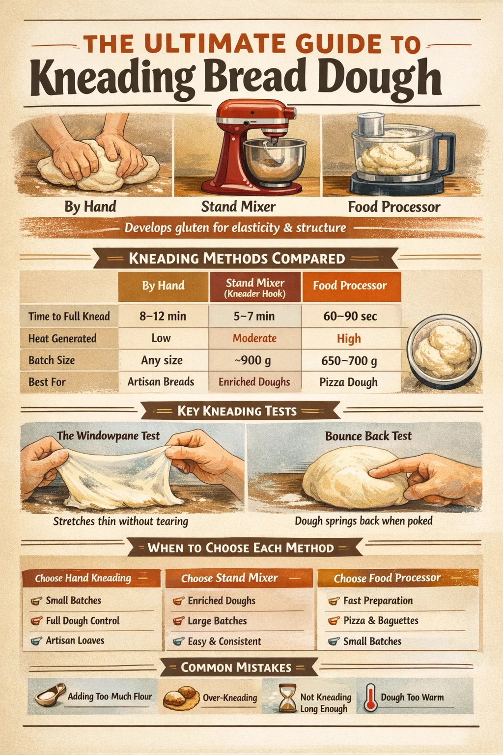 La bonne méthode de pétrissage n’est pas seulement une question de préférence : elle dépend du type de pâte, de votre équipement et de votre emploi du temps. Voici un guide pratique :