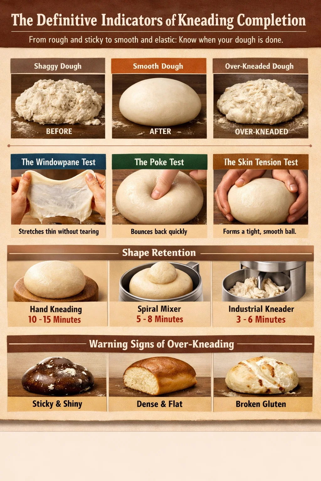 Bien que le sous-pétrissage soit le problème le plus courant chez les débutants, le sur-pétrissage constitue un risque sérieux lors de l'utilisation d'un puissant robot industriel. pétrin . Savoir quand s’arrêter est tout aussi vital que commencer.