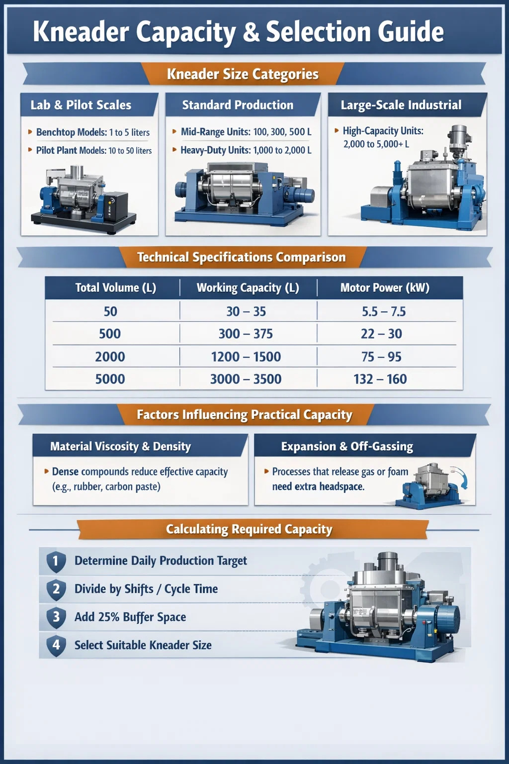 La capacité effective d'un pétrin en caoutchouc ou un mélangeur de produits chimiques n'est pas seulement une question de taille du réservoir. Plusieurs facteurs physiques déterminent la quantité de matière que vous pouvez réellement traiter par lot :